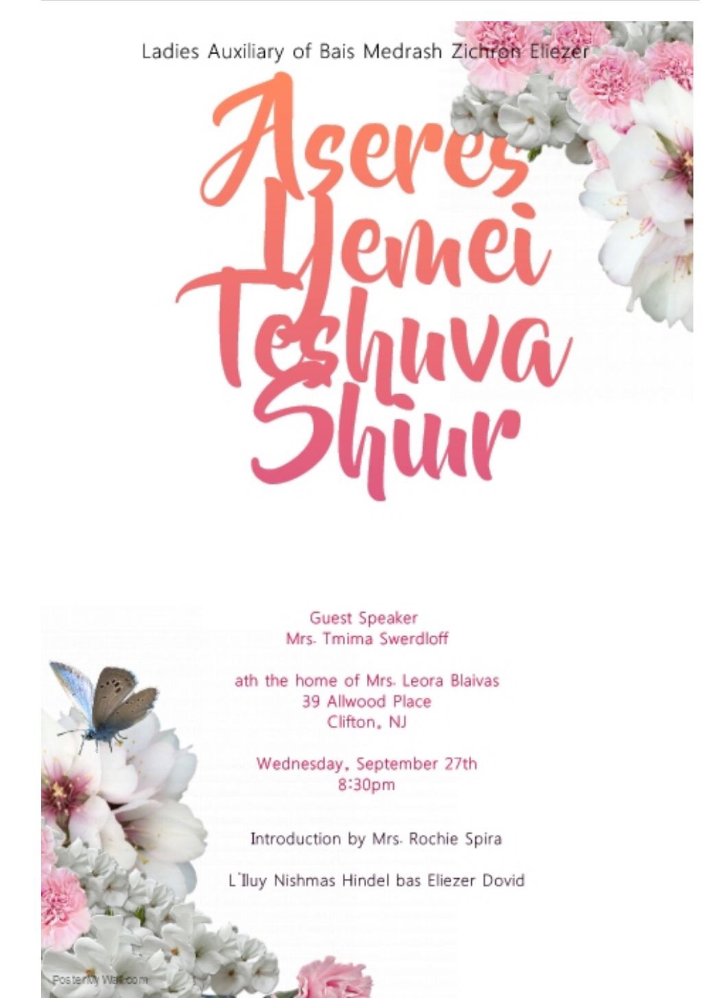 Aseres Yemei Teshuva shiur for women